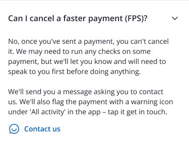 For topics where there was more potential for customer harm, it was crucial to ensure the content didn’t add friction but offered support. This was most important for when a user could be think they’ve lost money to in scam or from fraud.